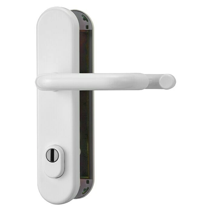 BAUHAUS Abus Schutzbeschlag HLZS814 für Hauseingangstüren, Weiß, Türstärke 52-72 mm, beidseitiger Drücker, abgerundetes Schild
