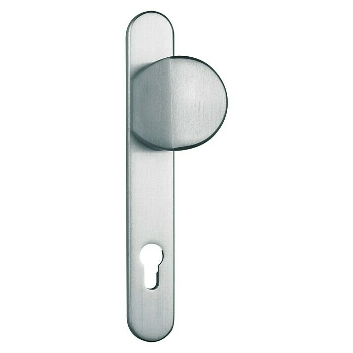 - Mit einem Knopf außen und einem Drücker innen bietet dieser Schutzbeschlag eine benutzerfreundliche Bedienung und erhöht die Sicherheit Ihrer Eingangstür.