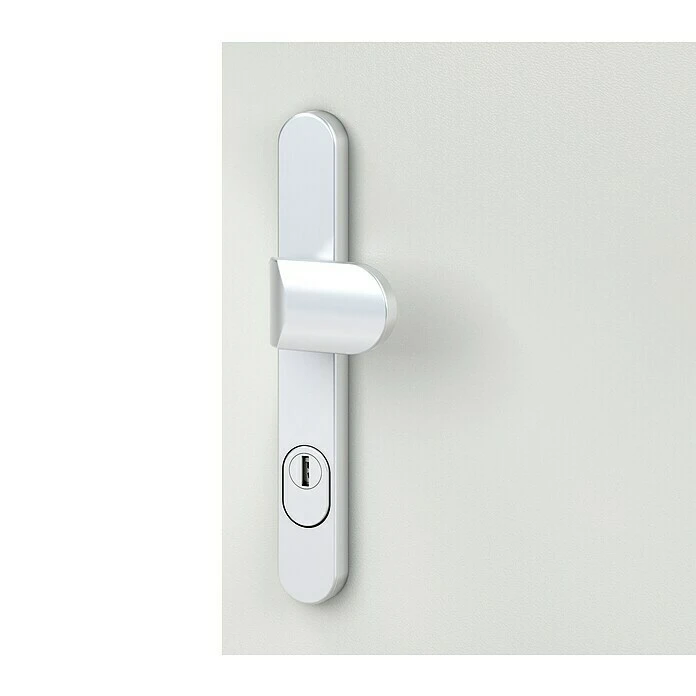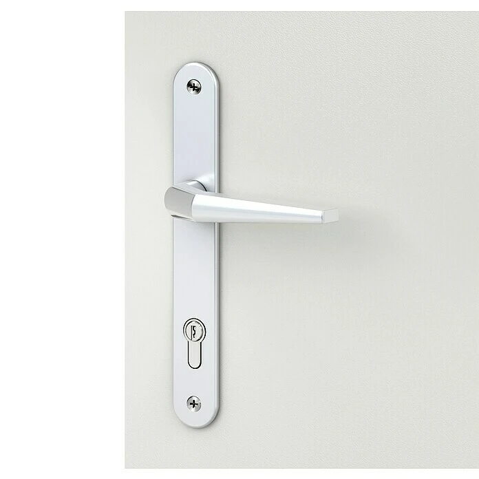 BAUHAUS Basi Schmalrahmengarnitur ES0 VMS Hauseingangstür, Silber, mit Zylinderabdeckung, Knopf außen, Drücker innen, 15 mm Stärke