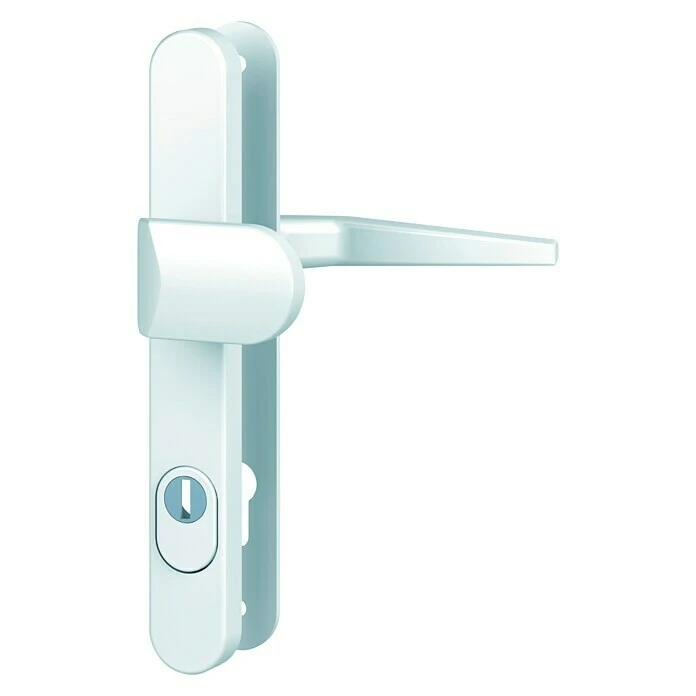 BAUHAUS Basi Schmalrahmengarnitur ES0 VMS Hauseingangstür, Weiß, mit Zylinderabdeckung, Knopf außen, Drücker innen, 15 mm Stärke
