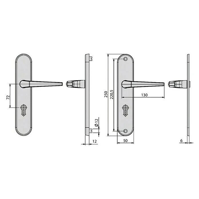 Der massive Vollmaterial-Schutzbeschlag der Marke BASI besteht aus hochwertigem Aluminium F2. Bei dem Schutzbeschlag handelt es sich um eine klassische Drücker-Drücker-Garnitur. Das runde Langschild besitzt eine Schildstärke von 12 mm und gibt dem Beschlag einen modernen Look. Der Türbeschlag ist mit einem Abstand von 72 mm gefertigt. Der Beschlag kann bei allen Innen- und Außentüren, Zimmertüren, Zwischentüren uvm. eingebaut werden. Durch die vorgefertigte Profilzylinder-Lochung für einen Türzylinder, kann die Tür von beiden Seiten mit dem Schlüssel geöffnet bzw. verschlossen werden. Der Schutzbeschlag aus Vollmaterial kann bei Türen mit einer Türblattstärke von 38-42 mm, sowohl DIN LINKS / DIN RECHTS eingesetzt werden. Innen Vierkant mit 8 mm – innen sichtbare Verschraubung.