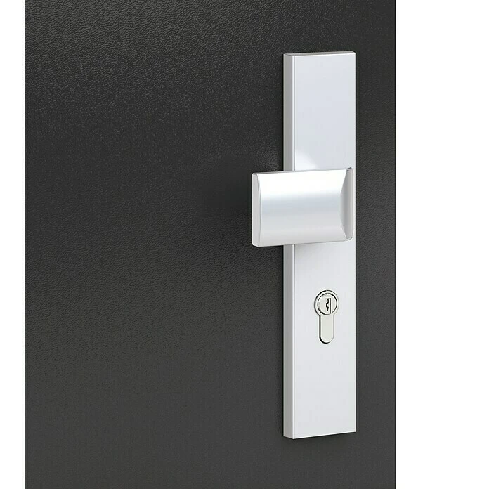 - Dieser Schutzbeschlag ist in einer eleganten Silberoptik erhältlich und verfügt über einen Knopf außen sowie einen Drücker innen, was eine einfache und sichere Bedienung gewährleistet.