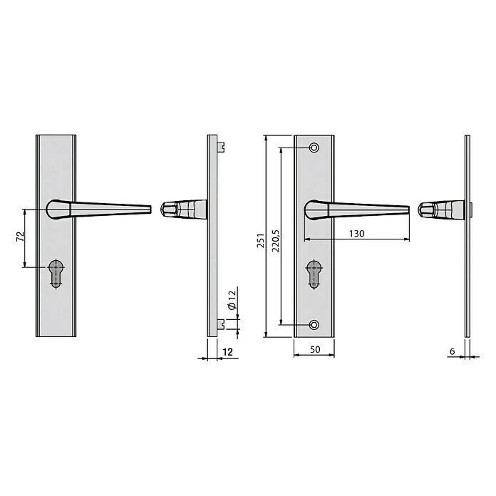 Der massive Vollmaterial-Schutzbeschlag der Marke BASI besteht aus hochwertigem Aluminium F2. Bei dem Schutzbeschlag handelt es sich um eine klassische Drücker-Drücker-Garnitur. Das eckige Langschild besitzt eine Schildstärke von 12 mm. Der Türbeschlag ist mit einem Abstand von 72 mm gefertigt. Der Beschlag kann bei allen Innen- und Außentüren, Zimmertüren, Zwischentüren uvm. eingebaut werden. Durch die vorgefertigte Profilzylinder-Lochung für einen Türzylinder, kann die Tür von beiden Seiten mit dem Schlüssel geöffnet bzw. verschlossen werden. Der Schutzbeschlag aus Vollmaterial kann bei Türen mit einer Türblattstärke von 38-42 mm, sowohl DIN LINKS / DIN RECHTS eingesetzt werden. Innen Vierkant mit 8 mm – innen sichtbare Verschraubung.