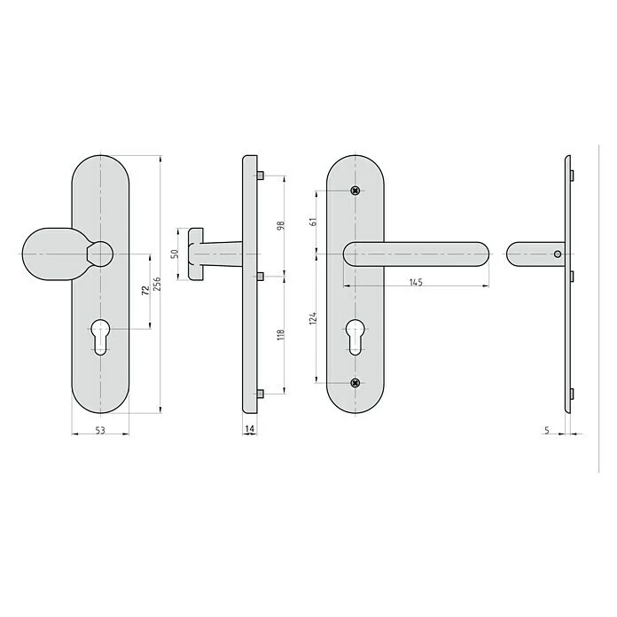 - Der Beschlag ist für Türstärken von 38 mm bis 45 mm geeignet und verfügt über einen Knopf außen sowie einen Drücker innen, was eine einfache und sichere Bedienung gewährleistet.