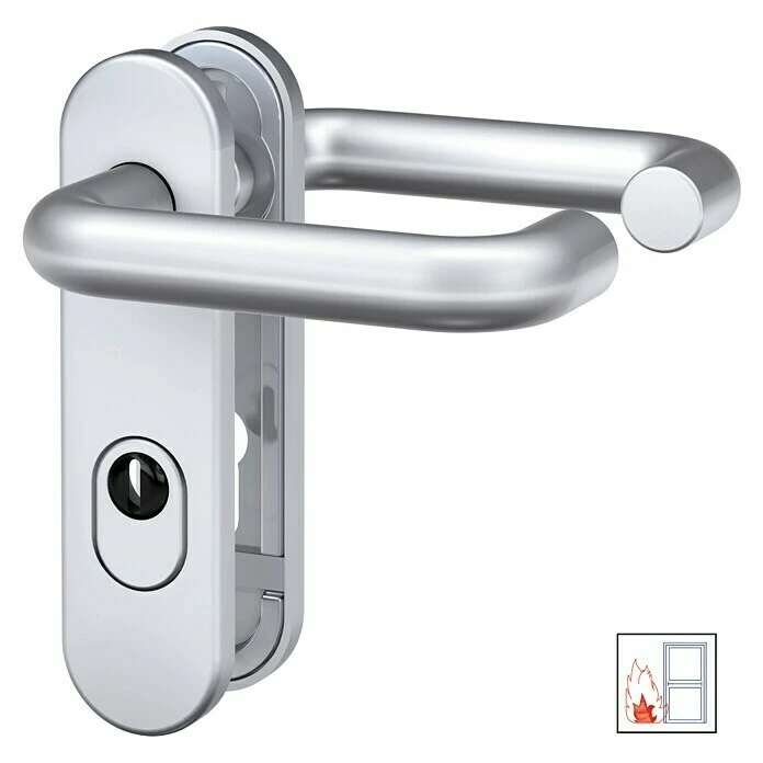BAUHAUS Basi Schutzbeschlag SB/FS 2200K ES1 Feuerschutztür, Aluminium, Türstärke 44-66 mm, beidseitiger Drücker, mit Zylinderabdeckung