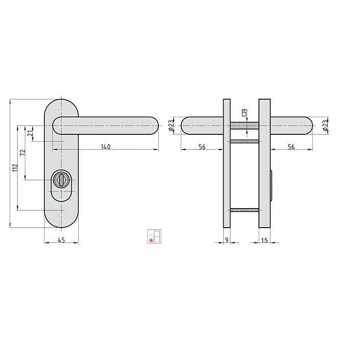 Der klassische und zeitlose Feuerschutz-Beschlag der Marke BASI, eignet sich für alle gängigen Feuerschutztüren, Kellertüren, Brandschutztüren oder auch Zimmertüren, die eine Türstärke von 44-66 mm aufweisen. Es handelt sich hierbei um eine klassische Drücker-Drücker-Garnitur die von beiden Seiten geöffnet werden kann. Der Beschlag hat eine vorgefertigte Lochung für einen Türzylinder – wo ohne Probleme ein Profilzylinder bzw. Blindzylinder eingesetzt werden kann. Durch seine Unterkonstruktion aus Stahl liegt der Schmelzpunkt der Einzelteile bei über 1000°C, dies macht den Beschlag besonders widerstandfähig. Tägliche Belastungen meistert der BASI Feuer-Schutzbeschlag problemlos. Im Lieferumfang ist alles für eine einfache und präzise Montage für den Heimwerker enthalten. Dank beiliegender Anleitung und Befestigungs-Set ist die Installation ein Kinderspiel. Der Beschlag ist DIN LINKS / RECHTS verwendbar. Der Abstand beträgt 72 mm, Innen Vierkant: 9 mm, Stahlkern im Drücker, nicht sichtbare Verschraubung.