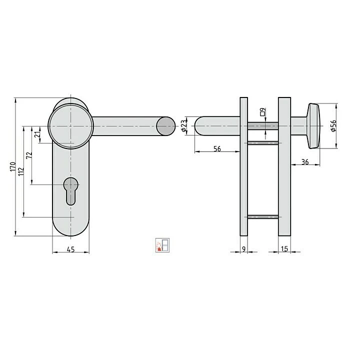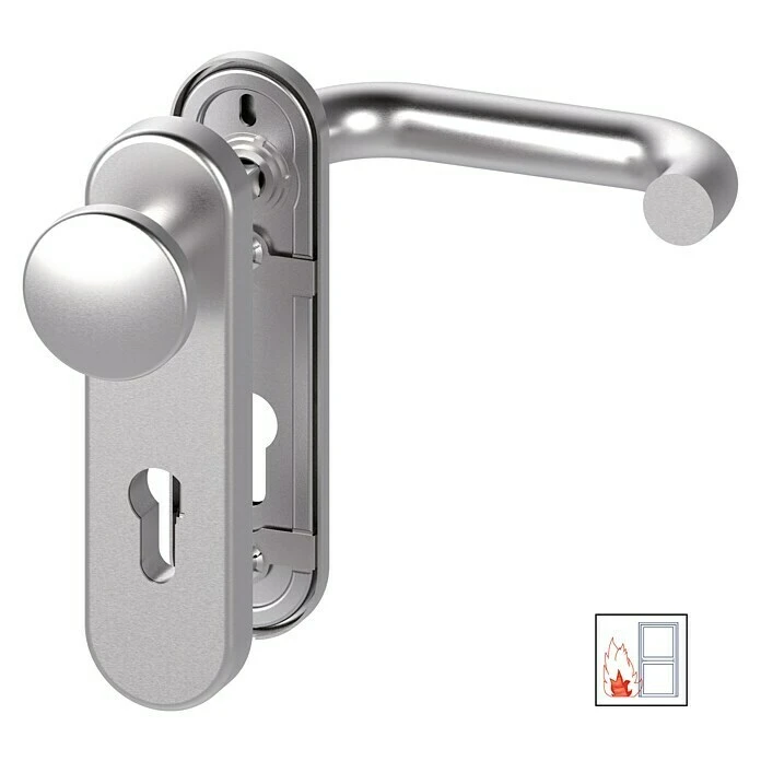 BAUHAUS Basi Schutzbeschlag SB/FS 2200K ES1 Feuerschutztür, Edelstahl, 44-66 mm Türstärke, Knopf Außen, Drücker Innen, ohne Zylinderabdeckung