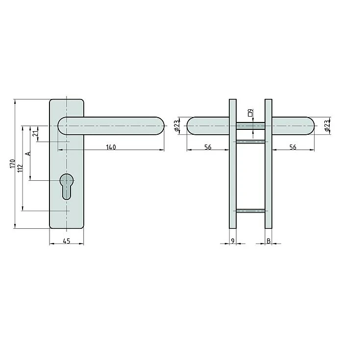 BAUHAUS Basi Schutzbeschlag ZT/FS 2100 für Feuerschutztüren, Aluminium, Türstärke 44-66 mm, beidseitiger Drücker