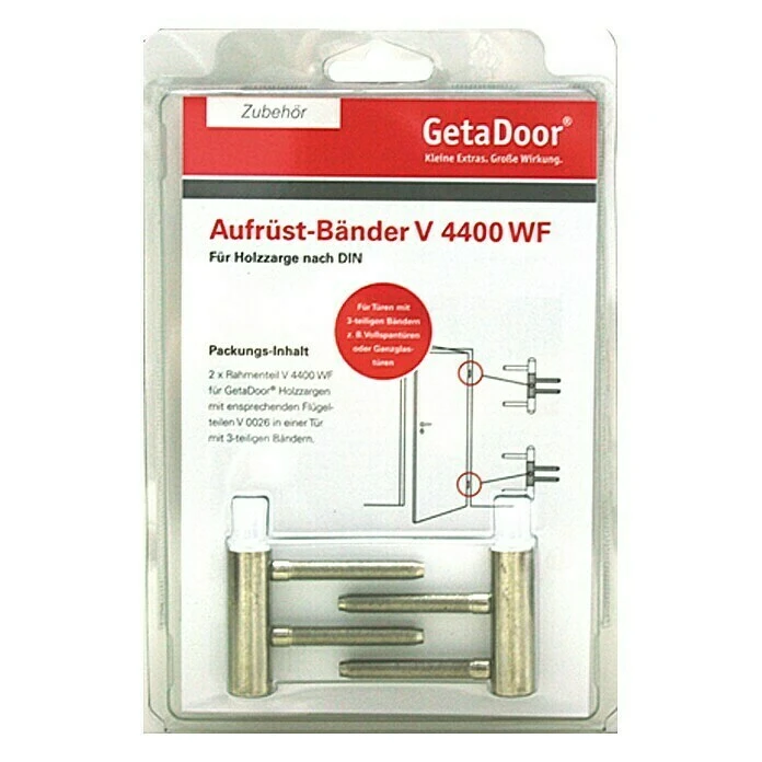 - Das BAUHAUS GetaDoor Aufrüst-Bänder V 4400 WF ist speziell für GetaDoor Zargen entwickelt und bietet eine zuverlässige Lösung zur Aufrüstung Ihrer Türzargen.